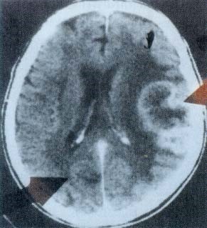 CT mit einem Hamerschen Herd in beginnender Lösungsphase.