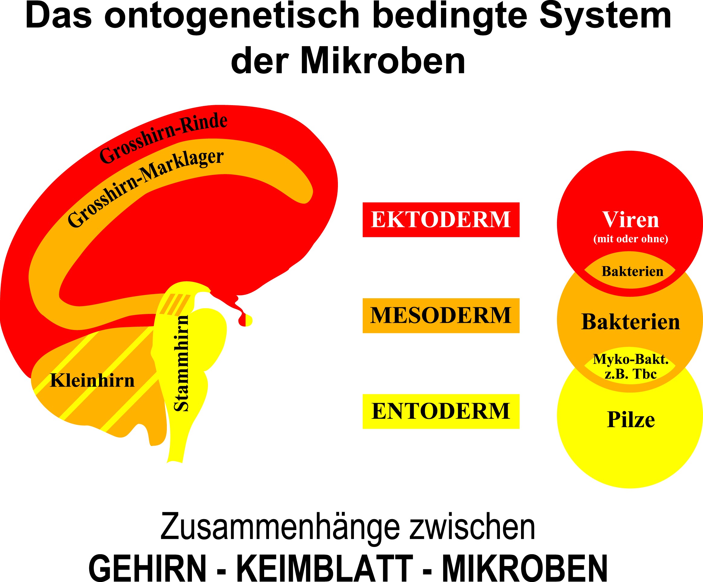 Das 4. Biologische Naturgesetz der Germanischen Heilkunde ordnet nun die Mikroben wiederum den drei Keimblättern zu, denn zu jeder keimblatt-verwandten Organgruppe gehören auch spezifische keimblatt-verwandte Mikroben.