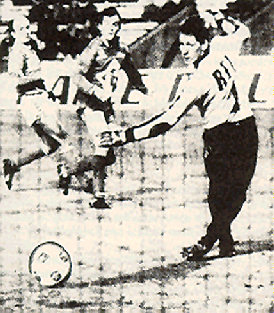 Dieses Sportfoto veranschaulicht, wie ein Torwart „auf dem falschen Fuß“ erwischt wird und konsterniert dem abgefälschten Ball nachschaut, den er im anderen Eck erwartet hatte. Er kommt nicht mehr vom falschen Fuß weg. Das ist die typische Situation beim DHS.