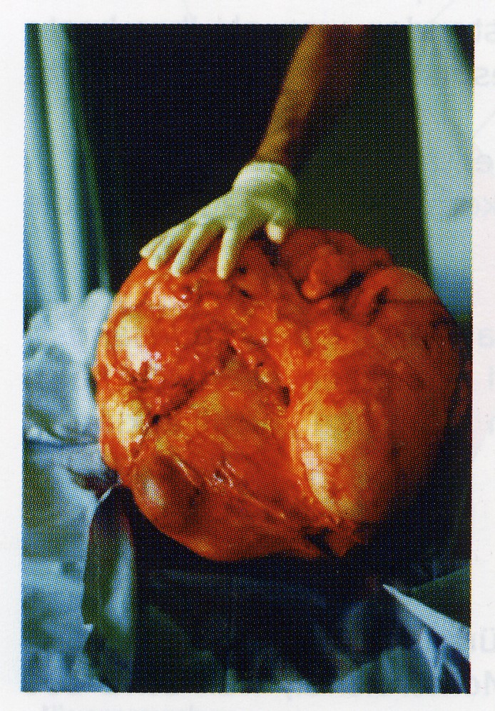 Diese insgesamt 6 kg schwere Zyste war mit einer derben Kapsel umgeben und konnte ohne Schwierigkeiten in toto entfernt werden, weil sie an keinem Organ angewachsen war.